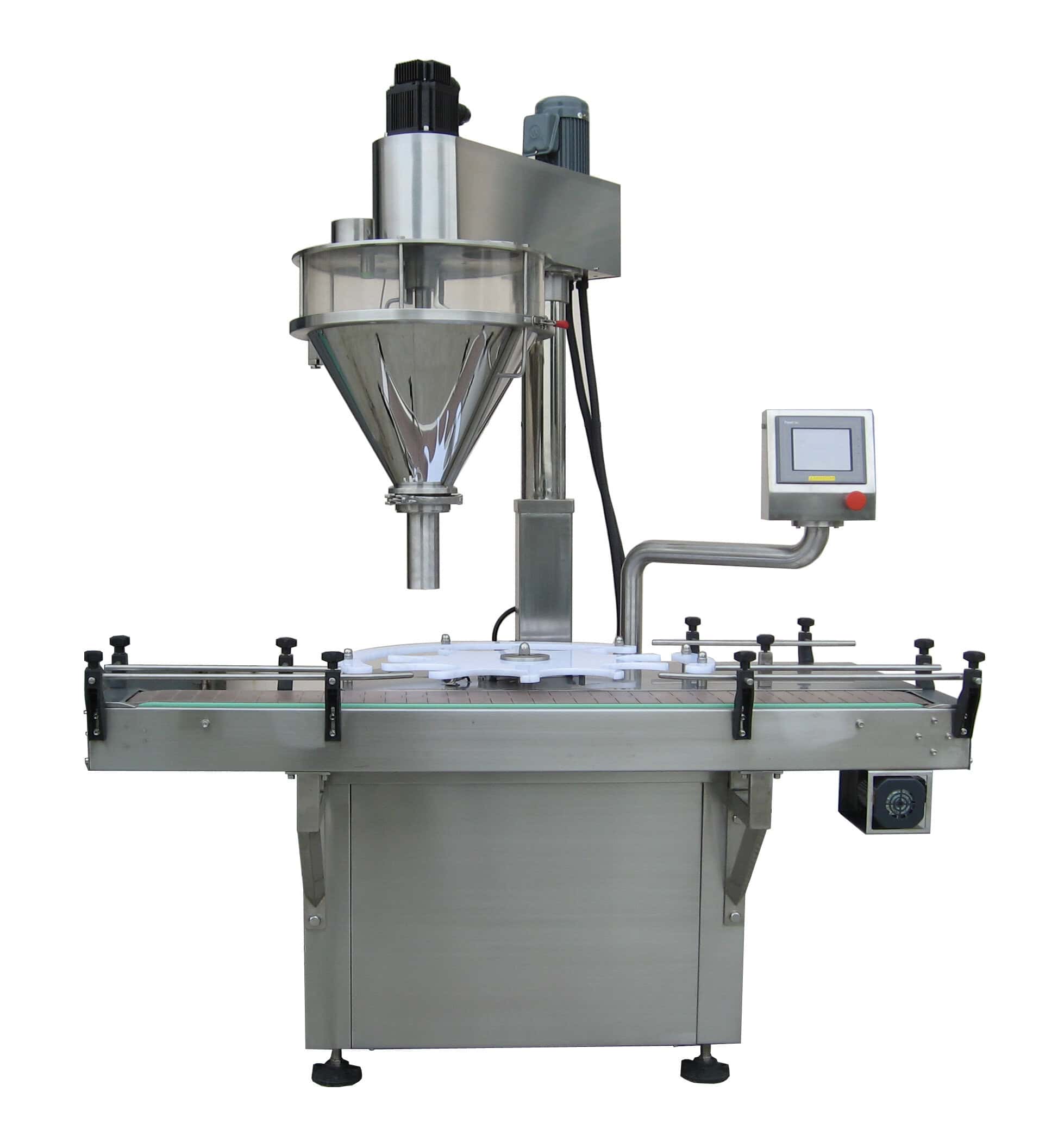 This Machine is a complete, economical solution to your filling production line requirements. It can measure and fill powder and granular. It consists of the Filling Head, an independent motorized chain conveyor mounted on a frame base. Add on systems for cappers, labellers, etc. can be applied. The auger filler is used for fluidic or low-fluidity materials, like milk powder, albumen powder, pharmaceuticals, condiment, solid drink, white sugar, dextrose, coffee, agriculture pesticide, granular additive, and so on.