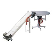 The conveyor is light in construction and can be offered in a full wash down version. The conveyor can be offered in different lengths on request and the incline section is designed to offer the customer an angle adjustment of 15 to 45 degrees for matching the belt exit to other equipments like metal detectors, check weighers, pack off tables and automatic packing stations. Other angle adjustments can be offered on request.
